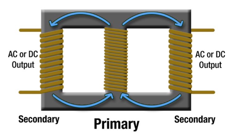 - Transformer – Steps down the power by a variable ratio versus a fixed ratio